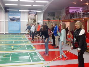 Auch dieses Jahr trafen sich viele BCKL-Mitglieder, um in der ansonsten ballonarmen Zeit etwas Sport zu machen! Es ist mittlerweile zur Tradition geworden, dem Nachbar "Shuffleboard Magic" einen Besuch abzustatten und eine ruhige Kugel - sorry: Disk - zu schieben, Spaß zu haben und sich dabei auch noch zu unterhalten. Nachdem uns die Regeln erklärt waren und ein paar Schiebungen probiert waren, startete ein Turnier, in dem sich Michael Storch (unteres rechtes Bild in der Mitte) durchsetzen konnte, vermutlich hat er die Zeit ohne Ballon zum Üben genutzt!