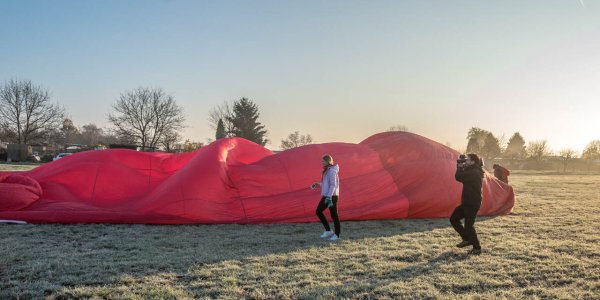 Kurzfristig musste eine Ballonfahrt an einem festgelegten Datum von einem festgelegten Ort nachmittags organisiert werden. Der Grund: Während der Ballonfahrt sollte eine standesamtliche Trauung stattfinden!