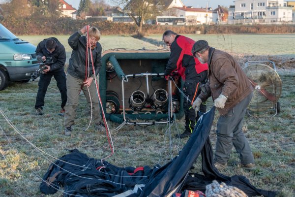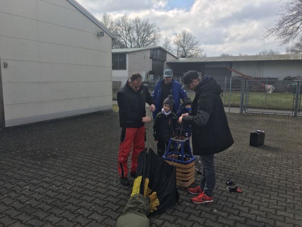 Es fand sich schnell eine Ballon-Crew, deren Mitglieder überwiegend unmittelbar vom Arbeitsplatz zu dem Ereignis kamen. Als Startplatz war der Grillplatz in Staden vom Paar ausgewählt worden.