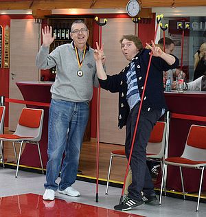 Mit viel Gefühl und Spaß wurden die Pucks über den Boden geschoben, und in einem packenden Finale gewann Günther Tausch vor Astrid Carl und Udo Hacker und damit den Wanderpokal!